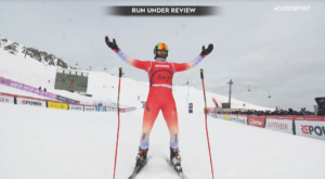 Po bardzo agresywnym skręcie Francuz Youri DUPLESSIS KERGOMARD zahaczył tyły nart prowadzącego Ryana REGEZA, czego efektem była chwilowa utrata panowania nad nartami i ostry skręt w prawo, który skutkował zmuszeniem Reprezentanta Niemiec Tobiasa MUELLERA do opuszczenia trasy!