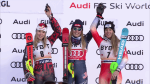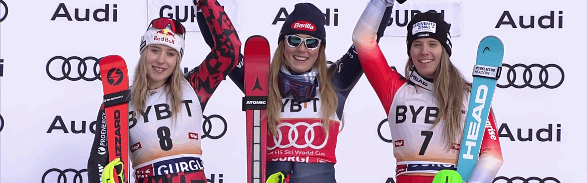 Podium slalomu pań uzupełniła Mistrzyni Świata Camille Rast, która potrzebowała takiego wyniku po bardzo słabym występie w Levi.