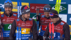 Na ostatniej prostej cała czwórka finiszowała na 100%. Najszybszy okazał się JULIAN SCHMID, który wygrywa tym samym po raz 3 w tym sezonie oraz po raz pierwszy w domu. REHRLA wyprzedził też JENS L.OFTEBRO, ale LAMPARTER już nie i na podium nowy rekordzista Schattenbergschanze stanął. A J.Lamparter przerwał swoją serię podiów, na których stawał nieprzerwanie od 17 grudnia.