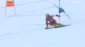 Jako 20 na trasę wyruszył srebrny medalista z Konkursu Drużynowego, który szansę indywidualną otrzymał tylko dzisiaj, a nie w swoim koronnym Slalomie – Luca AERNI. Były Mistrz Świata w Kombinacji Alpejskiej niestety źle wjechał w 2 bramkę, spadł zdecydowanie za nisko i nie zmieścił się w kolejnej co oznaczało dla niego koniec rywalizacji! Luca nie ukrywał złości.