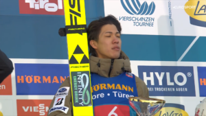 W emocjonującym konkursie, który był najprawdopodobniej ostatnim rozegranym na tym obiekcie przy świetle dziennym 24-letni reprezentant Japonii po wyrównanej walce pokonał lidera 74.Turnieju 4 Skoczni, Domena Prevca.