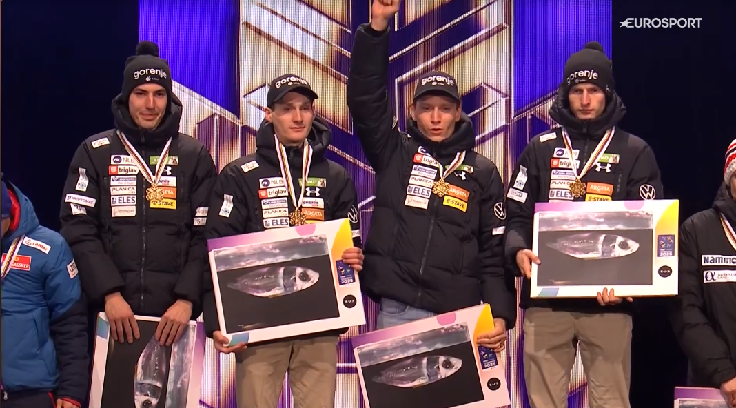 1.SŁOWENIA – Lovro Kos, Domen Prevc, Timi Zajc, Anze Lanisek