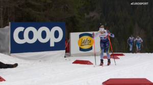 Norweżka wytrzymała za Jonną do samego szczytu, a następnie razem zjechały w stronę wielkiej trybuny, pokonały umiejscowiony przed nią ostry zakręt i rozpoczęły ostateczny sprint.