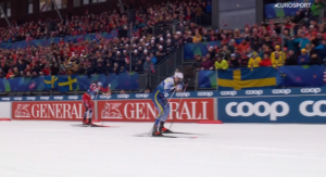 Therese JOHAUG od początku zmiany biegła jak tylko najszybciej mogła, ale Ebba ANDERSSON skutecznie utrzymywała jej tempo i cały czas strata SZWECJI do NORWEGII pozostawała w zasięgu 30 sekund, co na pewno dawało szanse Jonnie SUNDLING.