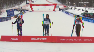 Na dole trwało w kompletnej ciszy podium, na którym 6 triumf w karierze odebrała Sara HECTOR, a pierwsze w gigancie podium odebrały Zrinka LJUTIC i Camille RAST. Mikaela zjechała po kilku minutach na noszach.