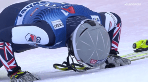 Niestety na jednym z pierwszych skrętów Clement wypadł z trasy i po raz kolejny nie kończy slalomu.