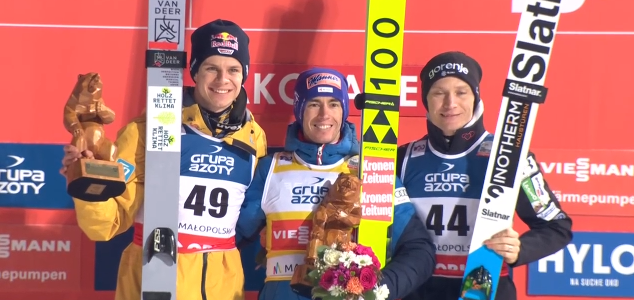 CAŁY POLSKI TURNIEJ WYGRALI AUSTRIACY I TO ONI ZAINKASOWALI 50 TYSIĘCY EURO. DLA STEFANA KRAFTA JEST TO 37 WYGRANA W PŚ I 109 PODIÓW – TYM SAMYM POBIŁ REKORD JANNE AHONENA!!! W GENERALNEJ NA KONIEC STYCZNIA PRZEWAGA WYNOSI OKOŁO 300 PUNKTÓW.