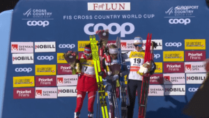 Ostatnie podium uzupełniła była dominatorka, Gyda WESTVOLD HANSEN. Podczas ceremonii klasyfikacji generalnej Ida Marie HAGEN odebrała PŚ oraz małą nagrodę dla najlepszej biegaczki. Najlepszą skoczkinią pozostała oczywiście Gyda.