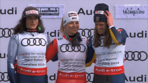 Upragnioną, wymarzoną Małą Kryształową Kulę dla najlepszego slalomisty sezonu 2023/2024 otrzymał z rąk wysokich urzędników Manuel FELLER! Kryształowe medale za 2 i 3 miejsce odebrali odpowiednio Linus STRASSER oraz Timon HAUGAN, który dzisiejszym triumfem wyprzedził w klasyfikacji Loica MEILLARDA oraz Clementa NOELA.