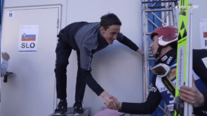 Trzeci od końca, tym razem z tej samej 21 belki ruszył Timi ZAJC. Słoweniec, który wreszcie jako lider PŚ w Lotach otrzymał tak jak to jest w innych dyscyplinach od lat czerwony plastron lidera wylądował również za blisko, na 213 metrze.