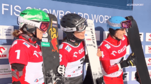 Trzecie miejsce egzekwo z powodu braku przkeroczenia przez obydwie panie mety dla rewelacji tego sezonu, Taliny GANTENBEIN i Margaux DUMONT, dla której jest to pierwsze podium w karierze.