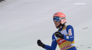TOP3 rozpoczął DAWID KUBACKI. Nasz Lider PŚ skoczył pięknie 138,5 metra i objął wyraźne prowadzenie +15 punktów nad Manuelem. A.LANISEK skoczył 1,5 metra krócej, ale obronił się dzięki przewadze z 1 kolejki. To było jednak za mało na Graneruda – Norweg skoczył jako jedyny dzisiaj na rozmiar skoczni 142 METRY i wygrał znów z wyraźną przewagą.