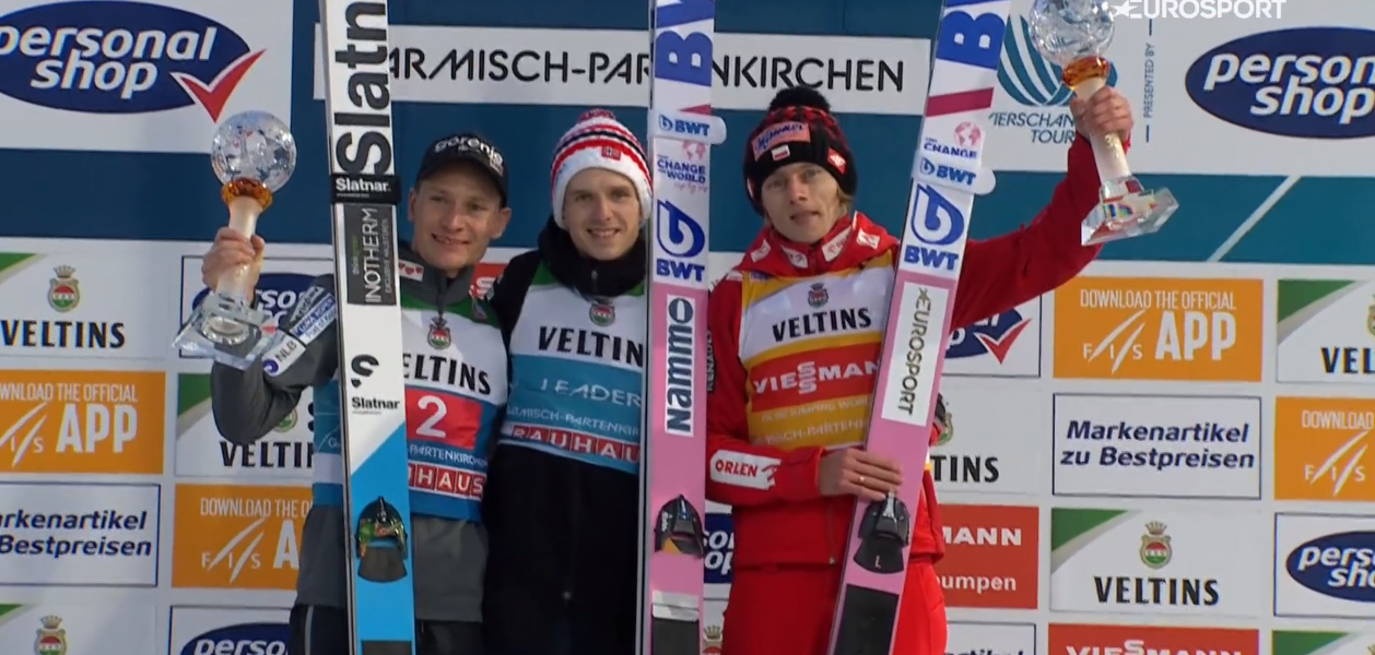 Ścisła czołówka to znów naszych trzech MISTRZÓW. WYGRAŁ DAWID KUBACKI po skoku na 140,5 METRA. 2 miejsce dla tego, który stracił dużo w Oberstdorfie – ANZE LANISEK. A trzeci skończył dzisiaj Timi ZAJC. Zaraz za nimi PIOTR ŻYŁA, kolejny który stracił sporo punktów – Manuel FETTNER oraz lider Turnieju HALVOR E.GRANERUD. Na siódmym miejscu kwalifikacje zakończył KAMIL STOCH!!!