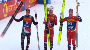 WIELKI FINAŁ ostatnich w tym roku zawodów rozstrzygnął się pomiędzy Mistrzem i Wicemistrzem OLIMPIJSKIM z dwóch ostatnich Igrzysk. Francuzi jeszcze na początku drugiego okrążenia (pierwsze było spokojne) prowadzili, ale na podbiegu stracili moc i Włoch z Norwegiem wyszli na prowadzenie. Młody tata prowadził jeszcze na wyjściu na ostatnią prostą, ale JOHANNES KLAEBO wygrał na prostej i triumfował po raz 53. W PUCHARZE ŚWIATA, a 5 raz w tym sezonie (w 7 starcie). Federico PELLEGRINO drugi, a trzeci z tyłu SINDRE B. SKAR, który pokonał na finiszu Michala Novaka, dla którego i tak wielkie wielkie brawa!