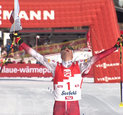 1.PÓŁFINAŁ był mocno obsadzony. Po rewelacyjnej walce do końca zwyciężył Johannes Klaebo, a drugi po fotofiniszu był L.CHANAVAT, który pokonał o czubek buta FEDERICO PELLEGRINO, który musiał czekać wraz z Sindre SKAREM na czasy drugiego biegu. Ten jednak był sporo wolniejszy i cała czwórka uzyskała awans do FINAŁU wraz z triumfatorami drugiej gonitwy – Richardem JOUVEM oraz Czechem, MICHALEM NOVAKIEM!