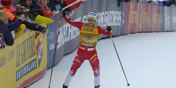 W piątkowe południe Mistrzyni Świata na 50 km w swoim pierwszym oficjalnym starcie po słynnym biegu z 9 marca po wyrównanej walce pokonała najgroźniejsze rywalki i odniosła swój 13 triumf w PŚ.