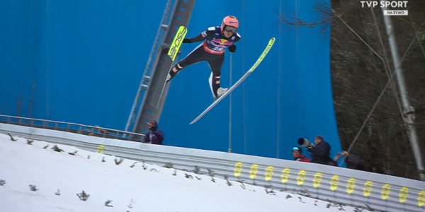 Reprezentant Słowenii najlepiej poradził sobie w trudnych warunkach i po rewelacyjnie, mimo miękkiego śniegu, wylądowanym skoku na 137 metr w drugiej serii wygrał z dużą przewagą