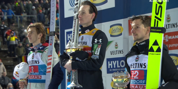 W konkursie kończącym w sezonie Olimpijskim rywalizację o Złotego Orła obrońca Kryształowej Kuli po udanym ataku w drugiej serii pokonał Domena Prevca oraz Ryoyu Kobayashi.