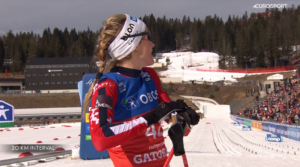 Po kilku minutach przejazd obok skoczni, lekki zjazd, podbieg pod strzelnicę, a następnie przejazd przez mostek i mocny finisz przed trybuną główną pokonała Therese JOHAUG. Na linii mety Therese była zdecydowaną liderką i bez wyraźnego zmęczenia czekała na finisz Astrid.