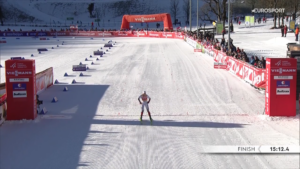 Po bardzo skutecznej ostatniej pętli zdecydowanie najlepszy okazał się Jens Luraas Oftebro, który o prawie 10 sekund wyprzedził na linii mety Stefana Retteneggera. Za młodszym z braci z stratą około 13 sekund na metę dotarli Ilkka Herola oraz Vinzenz Geiger.