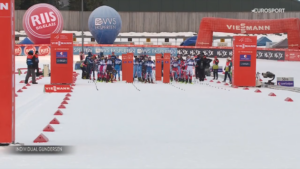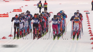 Przebieg rozegranego rano biegu na 10 kilometrów ze startu wspólnego gwarantował duże emocje na skoczni, gdyż różnice na mecie były minimalne – wszyscy faworyci przybiegli z niewielką stratą do najszybszego na 4 okrążeniach Johannesa Rydzeka.