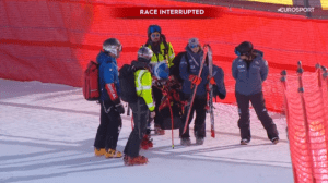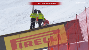 Corinne nie upadła, ale od razu po lądowaniu zaczęła hamować, odczuwała ogromny ból. Gdy zatrzymała się z boku trasy, szybko dotarła do niej pomoc. Po chwili została wzięta skuterem śnieżnym na bok trasy, a następnie tak jak MIKA zabrana helikopterem na badania. Niestety u szukającej formy Corinne SUTER stwierdzono zerwanie więzadła oraz uszkodzenie łękotki.