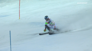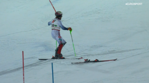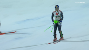 Francuz pozostał na prowadzeniu po starcie Alberta POPOVA, który jeszcze na sekcji dojazdowej do ścianki stracił krawędź nart i przejechał obok tyczek.