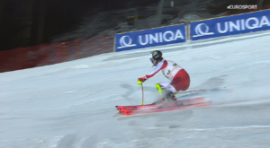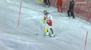 Z stratą nadal wynoszącą w dalszym ciągu ponad 1,50 sekundy do Linusa STRASSERA na trasę wyruszył pierwszy z reprezentantów Austrii, Marco SCHWARZ. BLACKY jednak nie zagroził liderowi, gdyż na wjeździe na ściankę NAJECHAŁ NA TYCZKĘ!