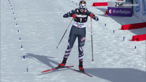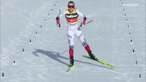 Na trasie biegowej reprezentantka Norwegii szybko dogoniła, a następnie zostawiła za swoimi plecami reprezentantkę USA.