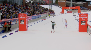 Po ostrym finiszu na linii mety lepszy okazał się tym razem Vinzenz GEIGER, który tym samym odniósł 5 wygraną w tym sezonie, czym znów zrównał się pod tym względem z drugim w sobotę Jarlem. Dla Norwega było to 109 podium w PŚ.