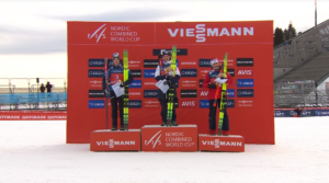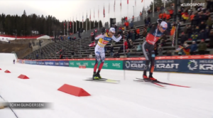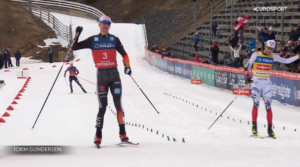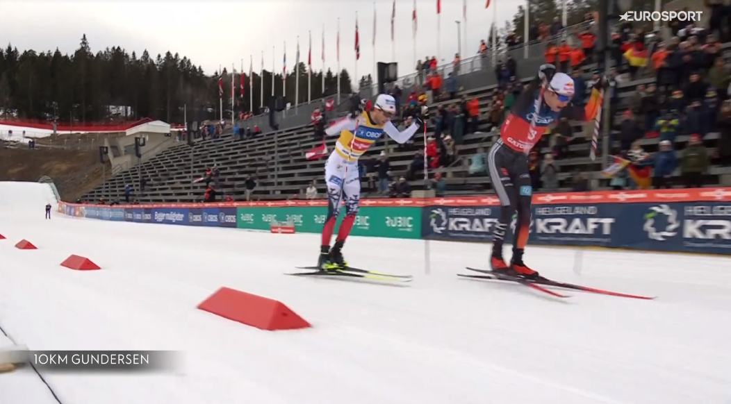 Jarl i Vinzenz mocnym tempem wbiegli na szczyt strzelnicy, a następnie zjechali z niej po mostku i wbiegli na ostatnią prostą. A tam Vinzenz GEIGER podobną zagrywką jaką Ryotę YAMAMOTO w Konkursie Mieszanym na MŚ potraktował Johannes LAMPARTER zagrał na krawędzi przepisów z Jarlem Magnusem RIIBEREM – Reprezentant Niemiec tuż przed świerkiem na krawędzi kontaktu z Jarlem jednorazowo zmienił bowiem tor jazdy. Jarl po tym manewrze reprezentanta Niemiec odpuścił dalsze ściganie i spokojnie dobiegł po 2 miejsce, a Vinzenz GEIGER cieszył się z 7 triumfu w tym sezonie. Po chwili podium uzupełnił Johannes LAMPARTER.