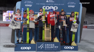 O podium walka trwała do końca. Ostatecznie 2 miejsce ku euforii kibiców wyrwali po fotofiniszu Jannik RIEBLI i Valerio GROND, a trzecie miejsce zajęli Szwedzi – Johan HAEGGSTROEM i Edvin ANGER.