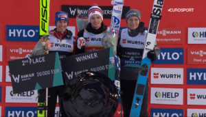 Jako 3 od końca na belce zasiadł Andreas WELLINGER, który chciał zrewanżować się za LILLEHAMMER. Wicemistrz Świata skoczył jednak poniżej 200 metrów i spadł na 12 miejsce. To dało podium dla 20-latka, dla którego jest to już 3 podium w tym sezonie.