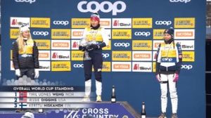 W walce 3 zawodniczek o 3 miejsce najlepsza okazała się TIRIL UDNES WENG. Jednak zawodniczka, która skończyła na 4 miejscu tym razem też była bardzo zadowolona – była nią bowiem Maja DAHLQVIST, której to wystarczyło do PŚ za Sprint – i to mimo braku nawet jednego zwycięstwa w całym sezonie!!!