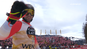 HENRIK KRISTOFFERSEN ruszył jako przedostatni. Bardzo chciał zrewanżować się za zeszły rok i zaryzykował ALL-IN. W pewnym momencie prawie wypadł z trasy, ale szybko to opanował i jeszcze dostał przyspieszenia! POKONAŁ LUCASA O PÓŁ SEKUNDY i był pewny podium. Ale na MANNLICHEN pozostawał jeszcze jeden zawodnik – faworyt gospodarzy!!!