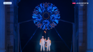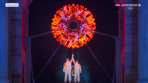 Na zakończenie Ceremonii, gdy znicze już płonęły, zaprezentowano pokaz pirotechniczny, a na Stadionie San Siro zapłonęły koła Olimpijskie!